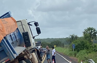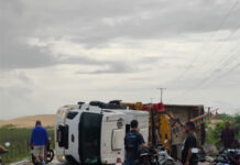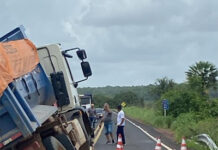 Caminhão de prestadora de serviços da Equatorial capota e interdita pista em Luís Correia