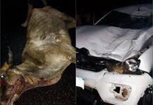 Colisão com vaca deixa veículo destruído na PI-214 em Joca Marques
