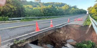 Cratera interdita trecho da BR-343 entre Buriti dos Lopes e Parnaíba, no Norte do Piauí