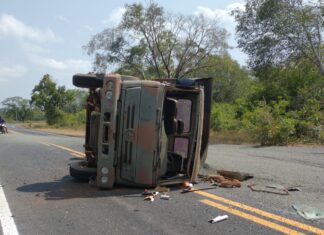Caminhão do Exército tomba na BR-222 entre Batalha e Piripiri
