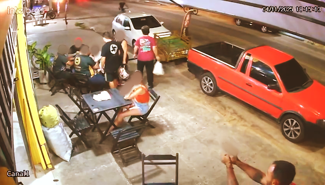 O atirador de rosto limpo desceu da garupa da moto Honda start vermelha com placa não identificada e buscou pelo alvo, acabou disparando aleatoriamente, atingindo uma criança inocente.